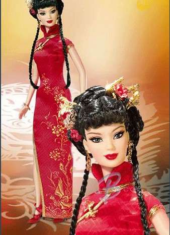 中国春节芭比 大家很熟悉的中国的芭比,红色传统旗袍,红唇,红花,映衬了节日的喜气洋洋。